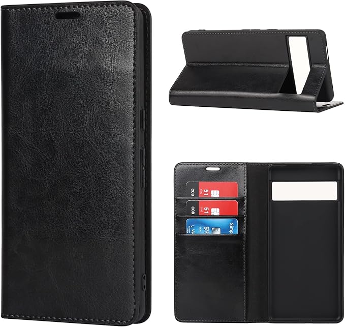 Pelanty Pixel 7 pro ケース手帳型 Google Pixel7 pro 携帯カバー 手作り 本革レザー Pixel 7pro 財布型カバー カード収納 スタンド機能 耐衝撃 マグネット無し 開閉ベルト無し グーグル ピクセル7pro 6.7'' スマホケース【選べる4色】ブラック