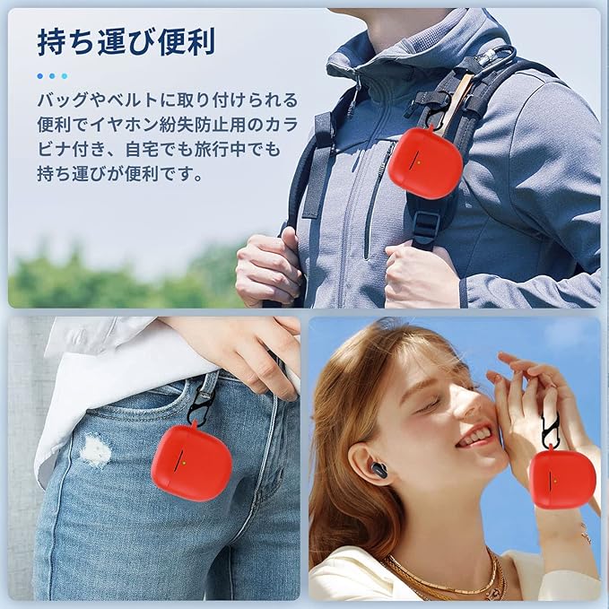 Bose QuietComfort Ultra Earbuds 用 ケース カバー 【NOUKAJU】ワイヤレス イヤーホン シリコン 保護ケース 落下防止 キズ防止 耐衝撃 装着充電可能 防水 防塵 カラビナ付き (レッド)