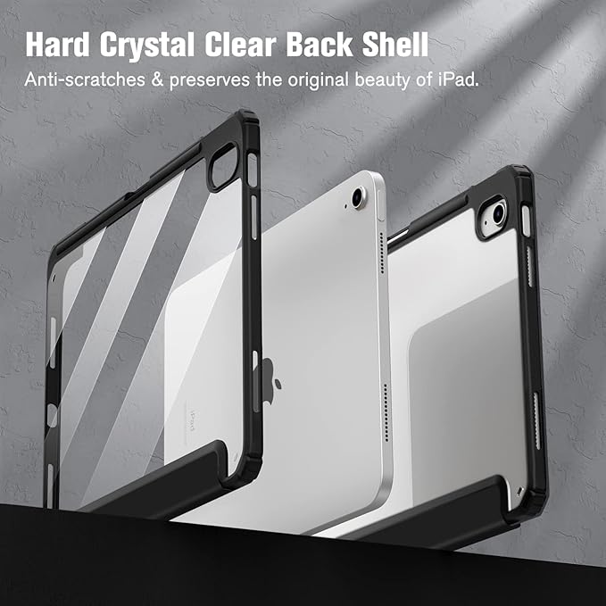 Fintie iPad 第11世代 (A16、2025) / 第10世代 (2022) ケース 11/10.9インチ 透明バックカバー Apple Pencil 収納可能 三つ折スタンド スリープ機能 軽量 薄型 傷つけ防止 PU合成レザー TPU(1ブラック)
