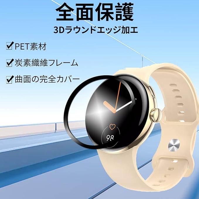 【高品質素材】 丈夫で、柔軟なPET複合材料は Google Pixel Watchを傷つかないようにします。スクリーンにぴったりとフィットし、本製品は100000回以上もテストされており、摩擦および衝撃による損傷はなく、スマートウォッチ本来の美しさをそのままに保つことが可能です。