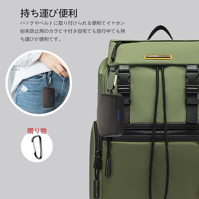 【使いやすい】ワイヤレスイヤホンの充電方法(通常またはワイヤレス充電)に関係なく、便利な充電のための底部の切り欠きを取り出す必要はありません。 カラビナキーチェーンが付属