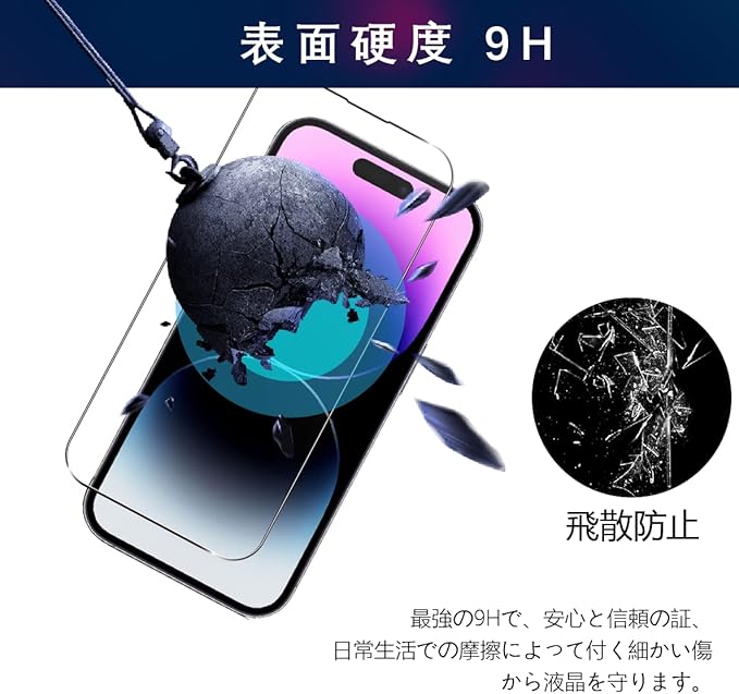 ?【高 品質の材料-AGC素材】 : 業界 最 高レベルの9H硬度を有し、4.5時間以上の高温クエンチ処理を受け、スクリーンプロテクターは、通常のガラスよりも5倍高い125MPaの圧縮強度を持っています。 9H硬度を持つガラスにハードコーティングが施されるこ