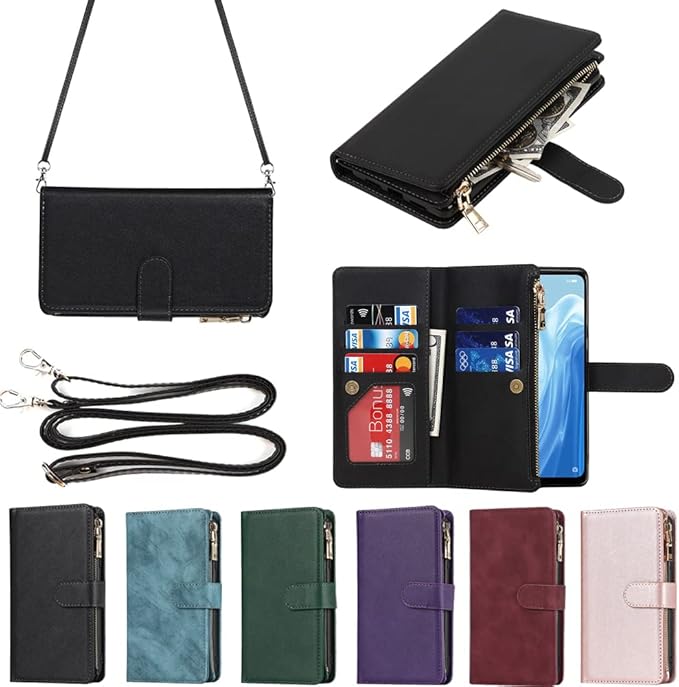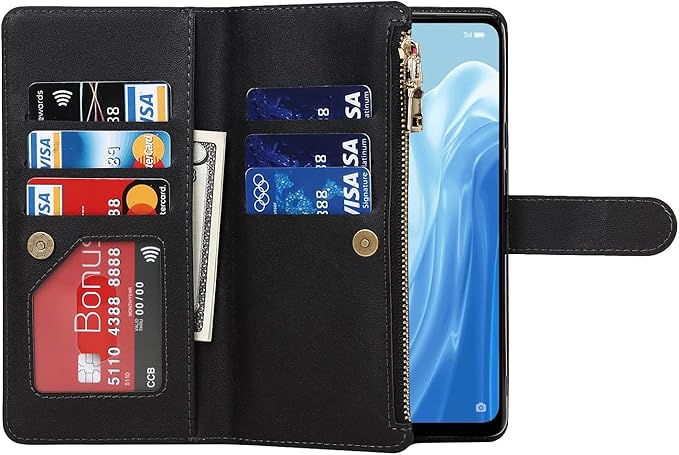 Eastwave for OPPO Reno7 A Reno9 A ケース for OPPO Reno 9A 縄掛けケース for Reno7A Reno9A 手帳型 財布型 ICカード コインポケット ストラップ付き カード 収納 小銭入れ ファスナーポケット付き PUレザー 6色 ブラック