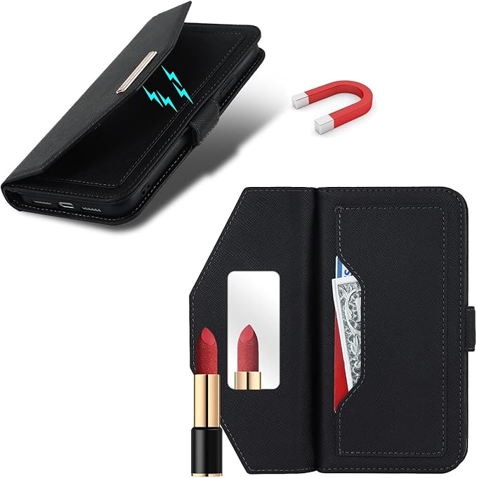 Eastwave for Google Pixel 7 Pro ケース for Pixel7 Pro 縄掛けカバー 手帳型 手帳 for pixel 7pro case チェック柄 鏡 ミラー付き 長ストラップ付き 肩掛け 革レザー 柔らかいTPU 多機能 財布型 カード収納 小銭入 れ スタンド機能 全面保護 5色ブラック