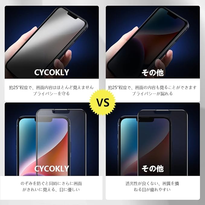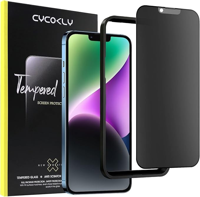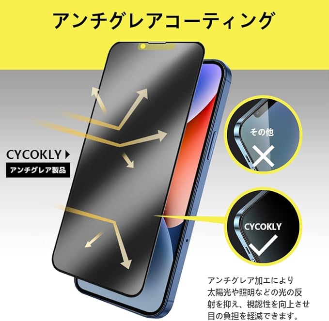 CYCOKLY iPhone14plus/ iPhone13promax用(6.7インチ)ガラスフィルム 【覗き見防止+アンチグレア】強化ガラス 液晶保護フィルム サラサラ感 ガイド枠付き 防塵設計