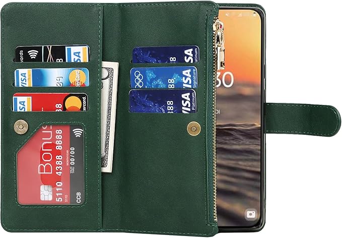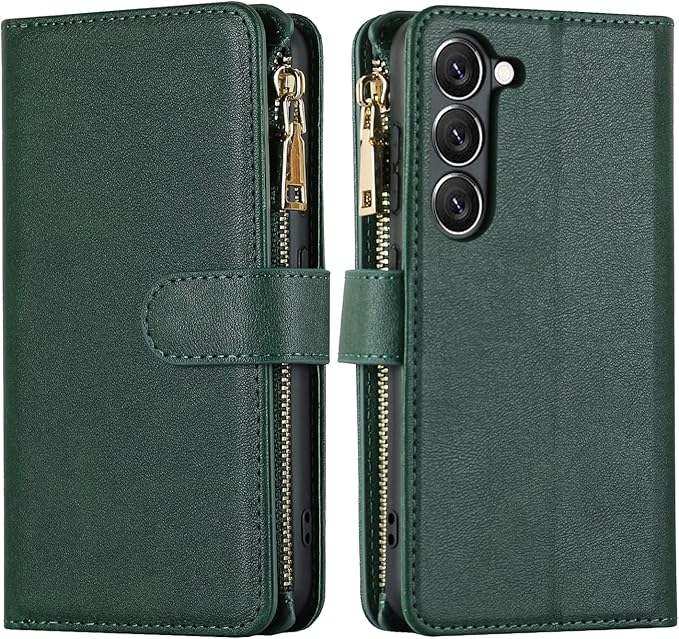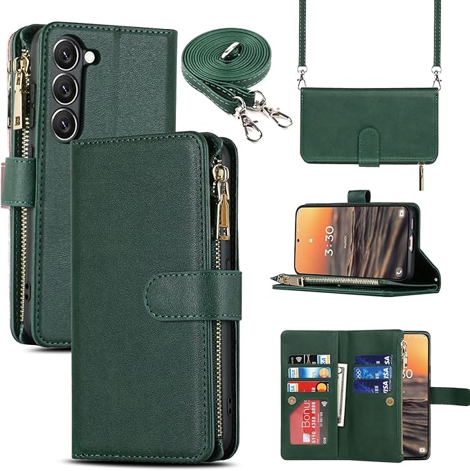Pelanty for Samsung Galaxy S23 縄掛けケース手帳型 SC-51D SCG19 携帯カバー 肩掛け斜めがけ ショルダー 合成皮革+TPU マグネット 財布型カバー ICカード お札入れ小銭入れ大容量 収納ポケット スタンド機能 サムスン ギャラクシー S23 ストラップ付き 落下防止 耐衝撃 全面保護(肩縄付き-グリーン)