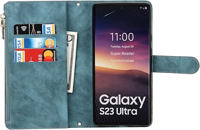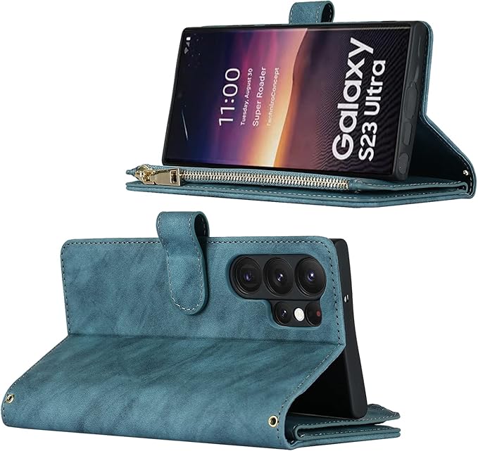 Pelanty for Galaxy S23 Ultra 縄掛けケース手帳型 SC-52D SCG20 携帯カバー 肩掛け斜めがけ ショルダー 合成皮革+TPU マグネット Samsung S23 Ultra 5G 財布型カバー ICカード お札入れ小銭入れ大容量 収納ポケット スタンド機能 ギャラクシーS23Ultra ストラップ付き 落下防止 耐衝撃 全面保護(肩縄付き-ブルー)