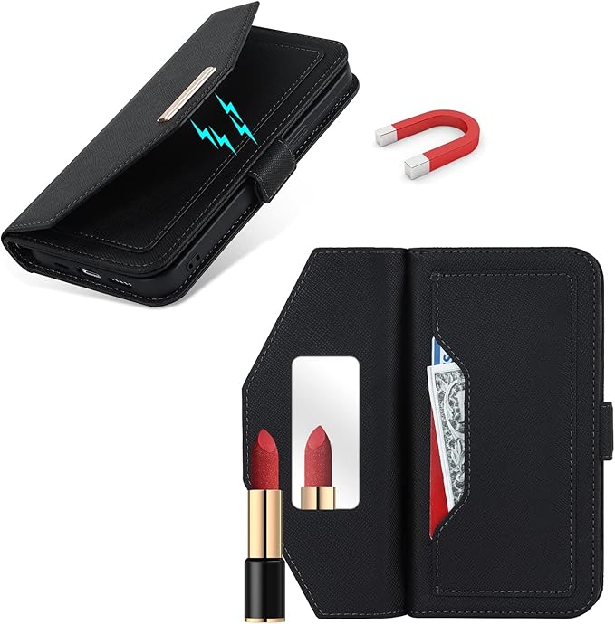 【収納力抜群】:ケース内側にはカードを2-3枚収納できるカードポケットとメモ、2枚の紙幣など収納できるポケットがあります。Dカードや運転免許証、交通カード、クレジットカード、ICカード、定期券、名刺などが収納でき、家族の写真などが収納でき、中央に穴があり、急ぎ時に指一本で簡単に押し出すカードポケットです。カードを持ち運びしやすいカードスロット設計のビジネスウォレットは、あなたの人生をより便利にします。化粧鏡付き、女の子は化粧