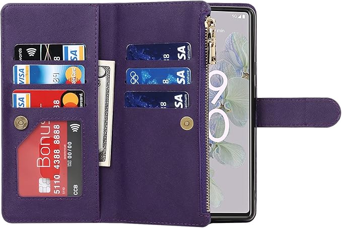 Eastwave Google Pixel 7 Pro ケース Pixel7 Pro Google 縄掛けケース 手帳型 Pixel 7pro 財布型 ICカード コインポケット ストラップ付き カード 収納 小銭入れ ファスナーポケット付き PUレザー 6色 パープル