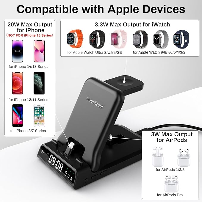 SwanScout 701A、Apple Watch対応、3in1 充電スタンド、25W急速充電器 、折りたたみ式、iPhone 14/13/12/11/X/8/7/6/5シリーズ&Apple Watch全機種&イヤホン適用