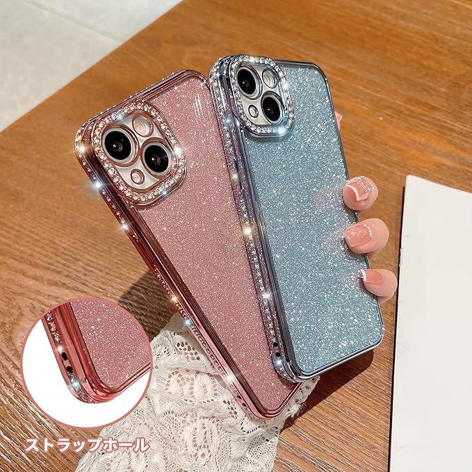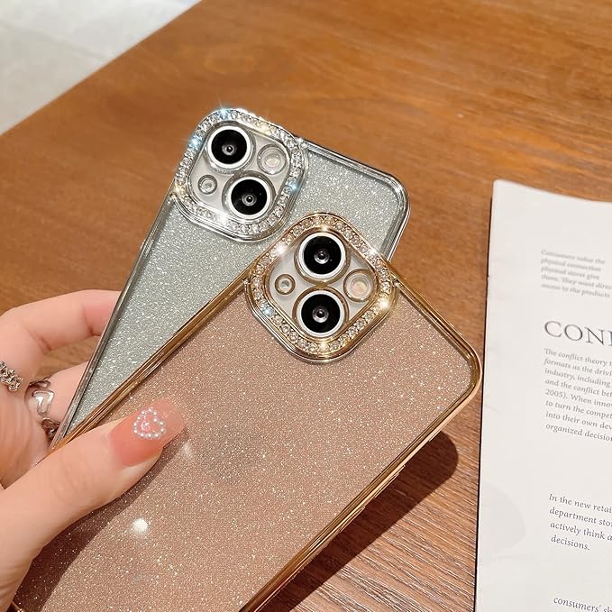 QziyanD for iPhone14 ケース 用の豪華なキラキラ輝くダイヤモンドケース14 カメラ保護 ソフトラインストーンメッキバンパースパンコールカバー 耐衝撃 韓国 かわいい-Gold-for iPhone 14