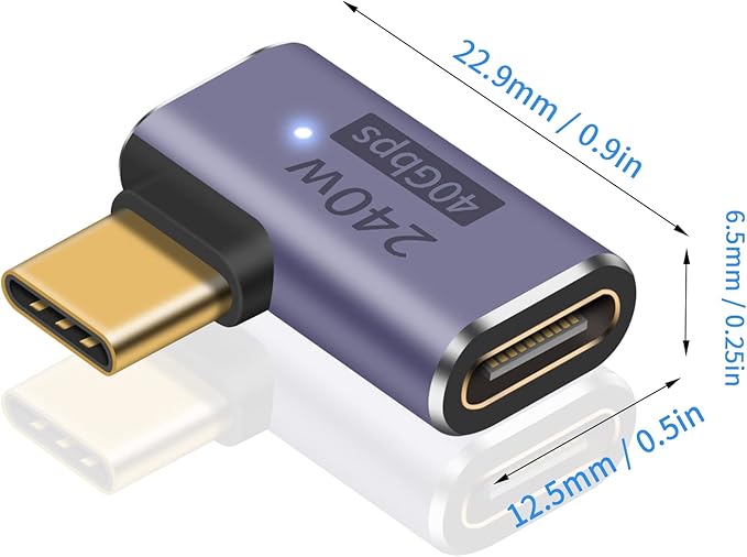 Poyiccot USB C L字 アダプタ240W 、USB-C 延長コネクタ、L型 Type C 変換アダプタ 40Gbps、8K@60Hzビデオ出力 USB-C 3.2 Gen2 Type-Cオス-メス 延長コネクタ LEDライト付き タイプC 延長 アダプタ 対応Thunderbolt 4/3、MacBook Pro/Air、HUB,2個
