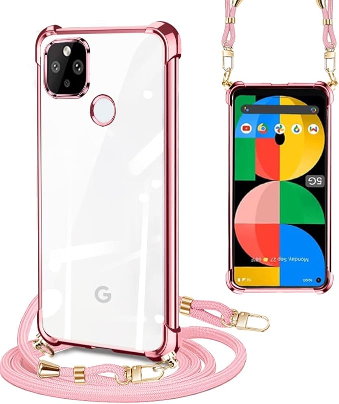 PAILAIMEN Google Pixel 5a ケース クリア ショルダー耐衝撃google pixel 5a カバー ストラップ ピクセル 5aスマホケース pixel5a ケース サムスン 肩掛け 斜めかけ 縄掛けケース透明 TPU ストラップ付き 薄型 軽量 紐付き 取り外し可能 携帯ケース(ローズゴールド)
