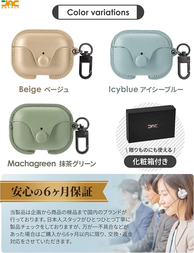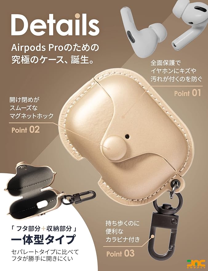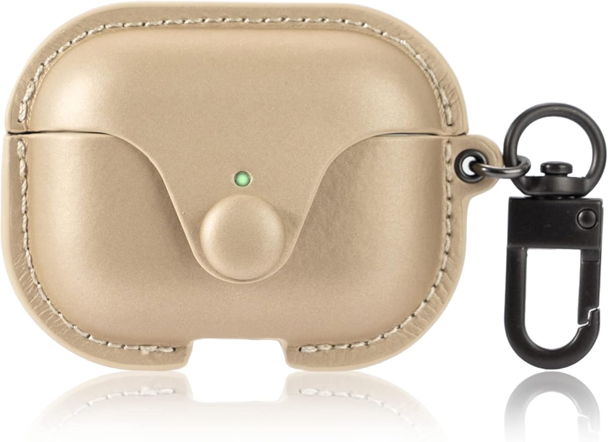 JAC Airpods pro ケース PUレザー エアーポッズプロ ケース 前面LEDが見える 全面保護 耐衝撃 ワイヤレス充電対応 (Beige)