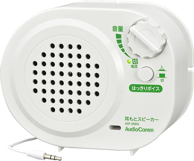 オーム電機AudioComm 耳もとスピーカー テレビ用 耳元スピーカー テレビの音を手元で聴ける 音ズレのない有線タイプ 5mロングコード ポータブル ホワイト ASP-206N 03-2067 OHM