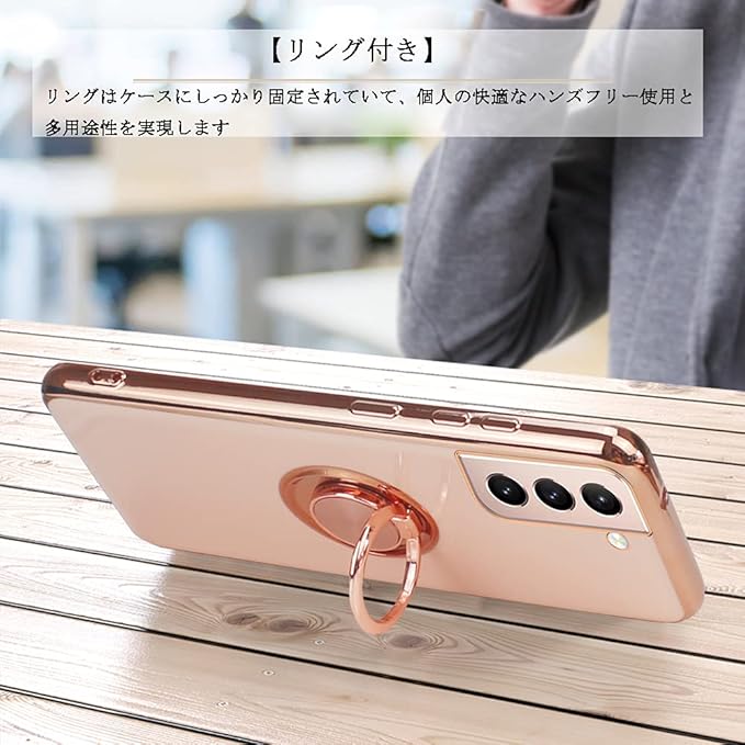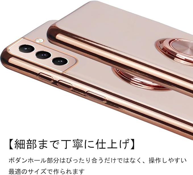 JOOBOY Galaxy s21 用 ケース ギャラクシー s21 5G 用 ケース リング付き メッキ加工 レンズ保護 tpu ソフト ストラップホール付き 耐衝撃 スリム おしゃれ スマホケース 携帯カバー ギャラクシーS21