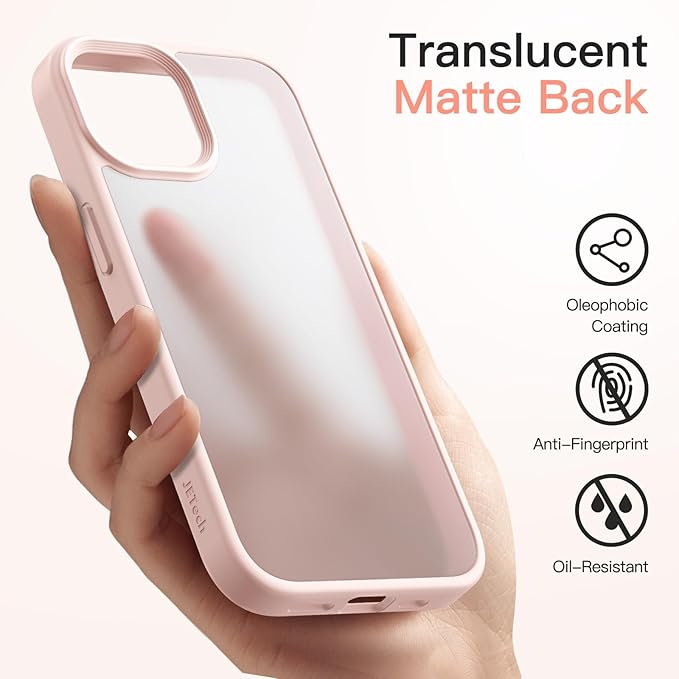 JETech マットケース iPhone 14 6.1インチ用 耐衝撃性ミリタリーグレードの落下防止 つや消しの半透明の背面電話カバー 指紋防止 (チョークピンク)