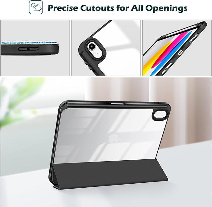 透明でつや消しのPCバックカバーはアイコンを表示し、iPadを衝撃、指紋、引っかき傷から保護します。内蔵したマグネットにより、オートスリープ/ウェイクに対応します。