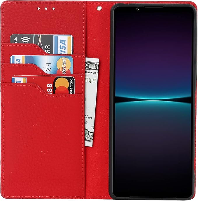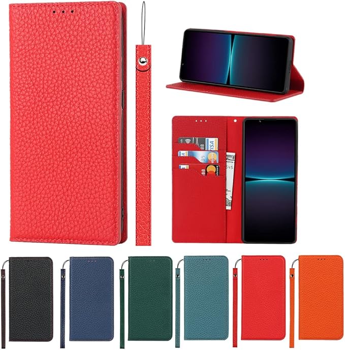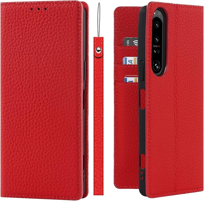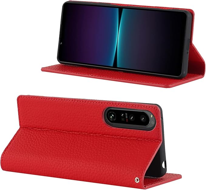Eastwave for Xperia 1 IV ケース 本革 牛革 ソニー for Xperia 1 iv SO-51C SOG06 ケース for sony xperia 1iv 手帳型 カバー Case カバー 手帳 本革 柔らかい 本皮 スプラットホール付き スプラット同梱 内蔵マグネット-レッド
