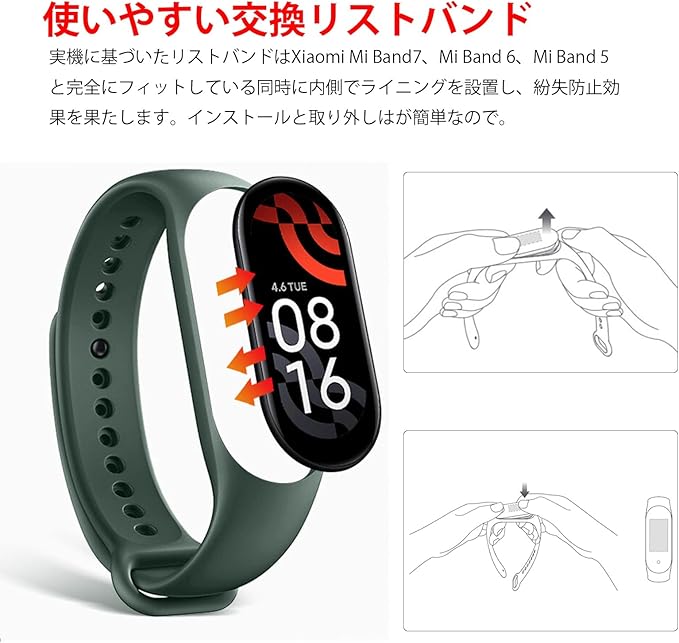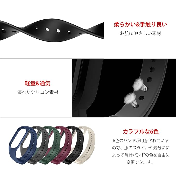 [LIKENNY] 6色 Xiaomi Mi Band 7 換えバンド シャオミスマートバンド 交換バンド シリコン製 柔らかい 通気性 防汗 耐衝撃コンパチブル Mi Band 7/6/5 交換ベルト 通用