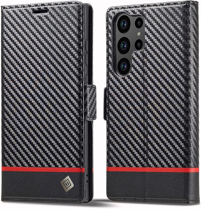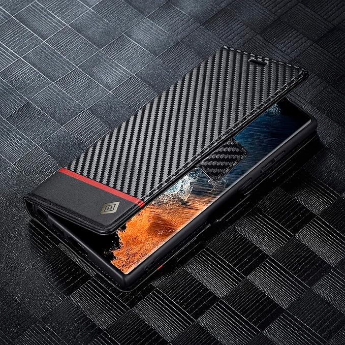 ZTOFERA Samsung Galaxy S23 Ultra ケース 手帳型 Galaxy S23 Ultra 5G ケース 手帳型 マグネット式 サムスンギャラクシー S23 Ultra スマホケース PU レザー おしゃれ カード収納 人気 スタンド可能 耐衝撃 頑丈 全面保護 財布型ケース エレガント 上品 耐久性 便利 炭素繊維テクスチャ スマホケース(赤い横線)