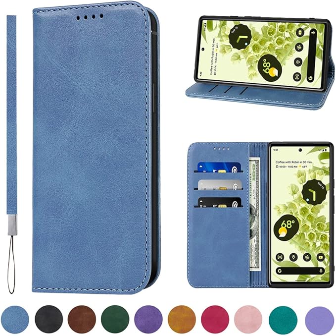 シンプルスマホ6 ケース 手帳型 Simple Sumaho 6 ケース 手帳型 A201SH ケース 高質PUレザー 耐衝撃 内蔵マグネット開閉式 ベルトなし スマホケース おしゃれ カードポケット スタンド機能 便利 スプラット同梱 携帯ケース (ブルー)
