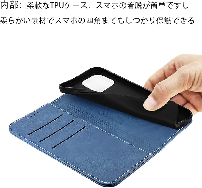 【カードポケット付き】:財布型ケースとして、名刺やお札などを入れるカードポケットがつき、ちょっとしたお出かけにもスマホケース一つでOK日常生活に便利です。ただし、カードを入れ過ぎると、閉まらない場合がありますので、ご遠慮ください。