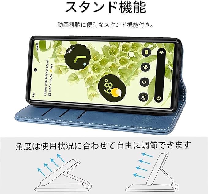 【多機能】:(1)[スタンド機能が付いて]:横向いて斜めに立てて、お好きな角度を調整できます。(2)[360度保護]:内蔵マグレット機能付きの手帳型カバーで、大切なディスプレイへのキズ、汚れ、衝撃も保護できます。(3)[マグネット開閉式]:携帯ケースの左側の裏に内蔵があり、両面カバーをしっかり固定することができます。
