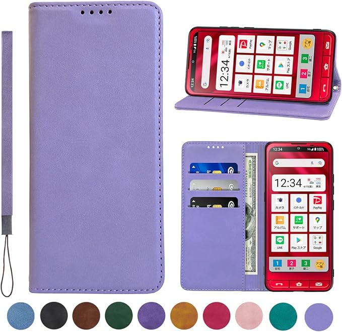 シンプルスマホ6 ケース 手帳型 Simple Sumaho 6 ケース 手帳型 A201SH ケース 高質PUレザー 耐衝撃 内蔵マグネット開閉式 ベルトなし スマホケース おしゃれ カードポケット スタンド機能 便利 スプラット同梱 携帯ケース (ライトパープル)