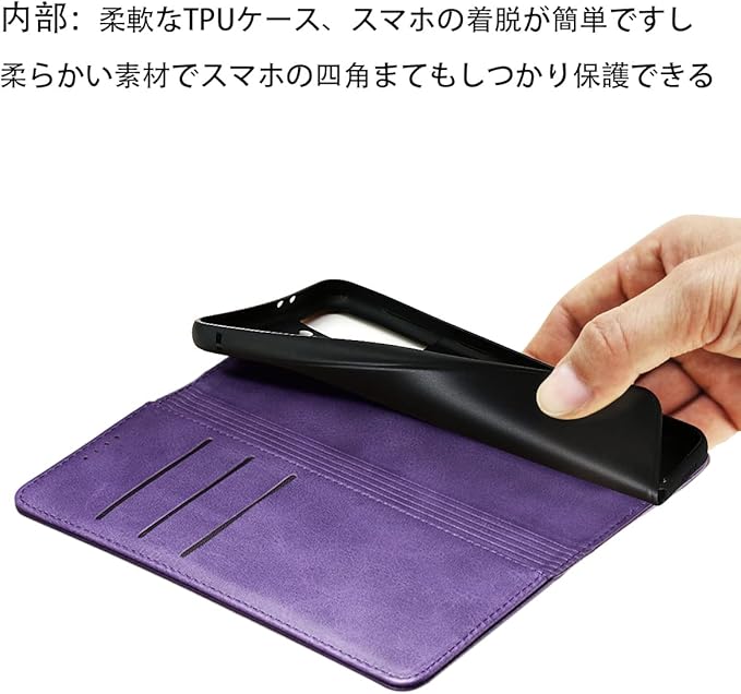 Google Pixel 7A ケース 手帳型 高質PUレザー Pixel 7A ケース Google Pixel 7A カバー ルピクセル 7A ケース 手帳型 耐衝撃 内蔵マグネット開閉式 ベルトなし スマホケース おしゃれ カードポケット スタンド機能 便利 スプラット同梱 携帯ケース(パープル)