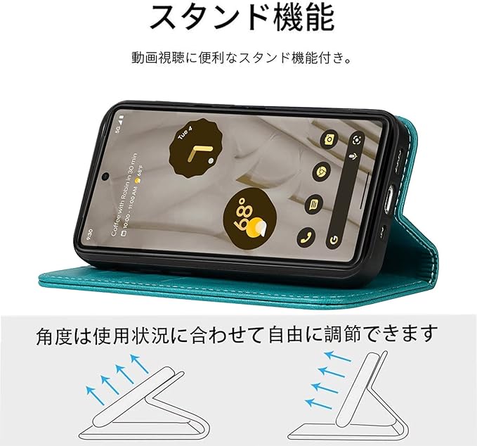 Google Pixel 7A ケース 手帳型 高質PUレザー Pixel 7A ケース Google Pixel 7A カバー ルピクセル 7A ケース 手帳型 耐衝撃 内蔵マグネット開閉式 ベルトなし スマホケース おしゃれ カードポケット スタンド機能 便利 スプラット同梱 携帯ケース(ターコイズ)