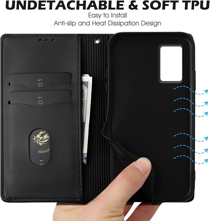 Kedic Libero 5G III ケース 手帳型 可愛い笑顔の猫模様 手作り ZTE Libero 5G III A202ZT 携帯カバー Libero5g3 ケース おしゃれ カード入れ 財布型 と横方向のスタンドが 多機能 リベロ 5g3 カバー 内蔵マグネット式 純色シンプルデザイン Libero 5G III 手帳型ケース 黒