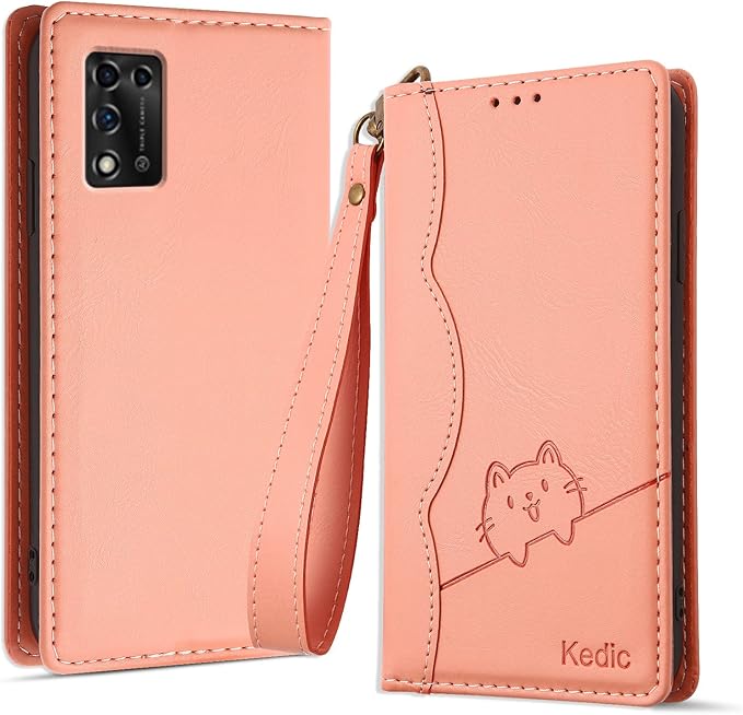 Kedic Libero 5G III ケース 手帳型 可愛い笑顔の猫模様 手作り ZTE Libero 5G III A202ZT 携帯カバー Libero5g3 ケース おしゃれ カード入れ 財布型 と横方向のスタンドが 多機能 リベロ 5g3 カバー 内蔵マグネット式 純色シンプルデザイン Libero 5G III 手帳型ケース ピンク