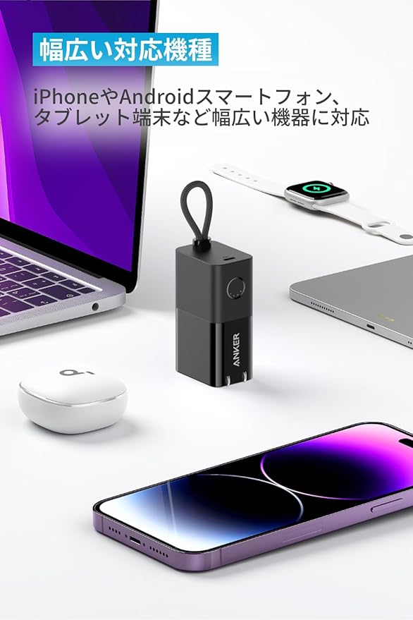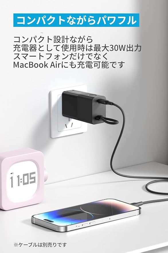 Anker 511 Power Bank (PowerCore Fusion 30W) / 小型 モバイルバッテリー / 5000mAh 30W出力 / コンセント一体型/USB Power Delivery/PowerIQ搭載/PSE技術基準適合/iPhone 16 / 15 Android iPad その他各種機器対応 (ブラック)