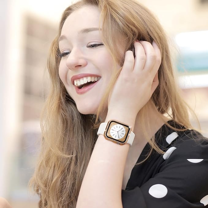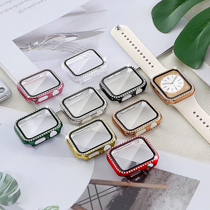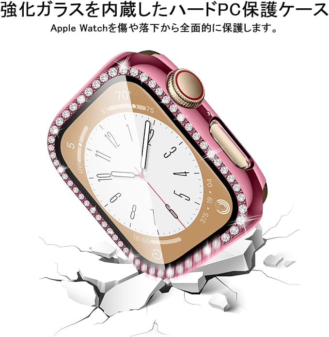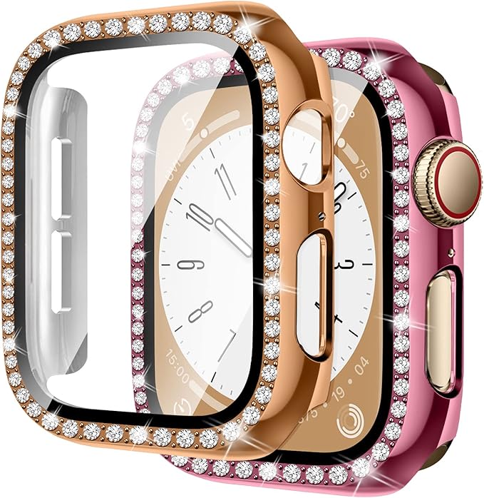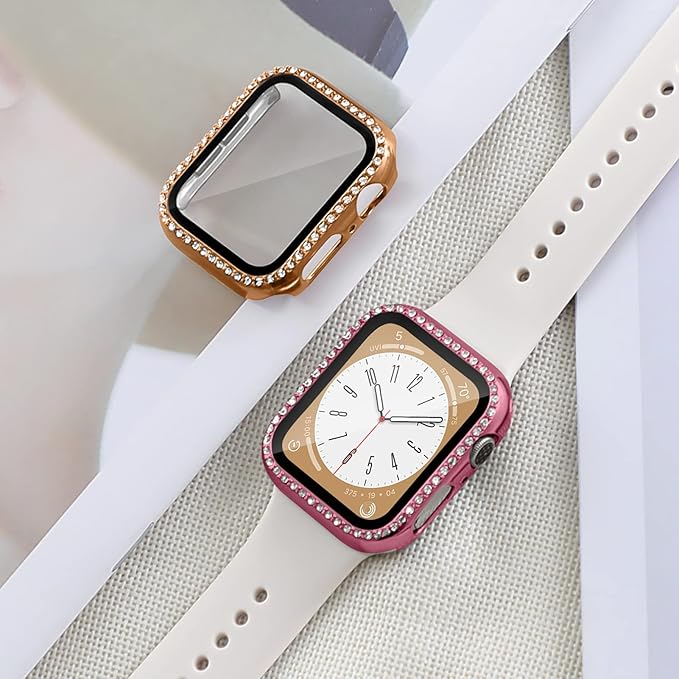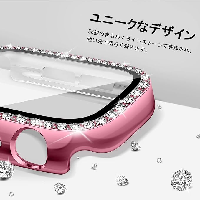 【2色セット】コンパチブル アップルウォッチ カバー 44mm、キラキラ、耐衝撃、全面保護、PC、コンパチブル apple watch カバー series 5 6 4 se、レディース/メンズ、コンパチブル apple watch ガラスフィルム、コンパチブル アップルウォッチ スクリーンプロテクター ケース(ローズゴールド-ローズピンク)