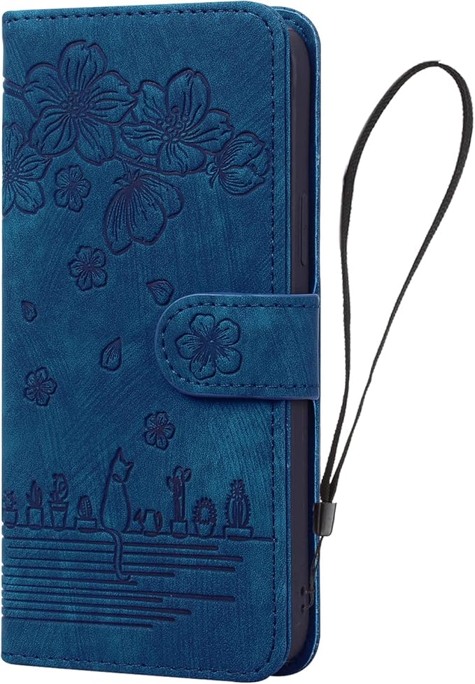 Torske Galaxy A54 5G ケース 手帳型 さくら柄 ギャラクシー A54 5G 用カバー 油絵デザイン ヴィンテージカラー 快適な質感 財布型 Galaxy A54 スマホケース カード収納あり 使う便利性 全面保護 ぎゃらくしー A54 5G カバー ギャラクシーA54 ケース 携帯ケース 6.4インチ 青い