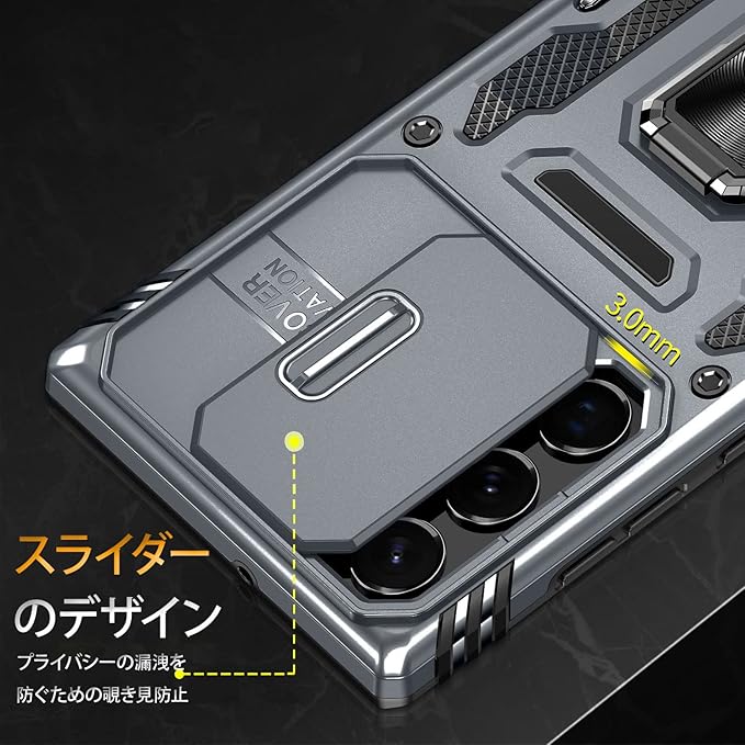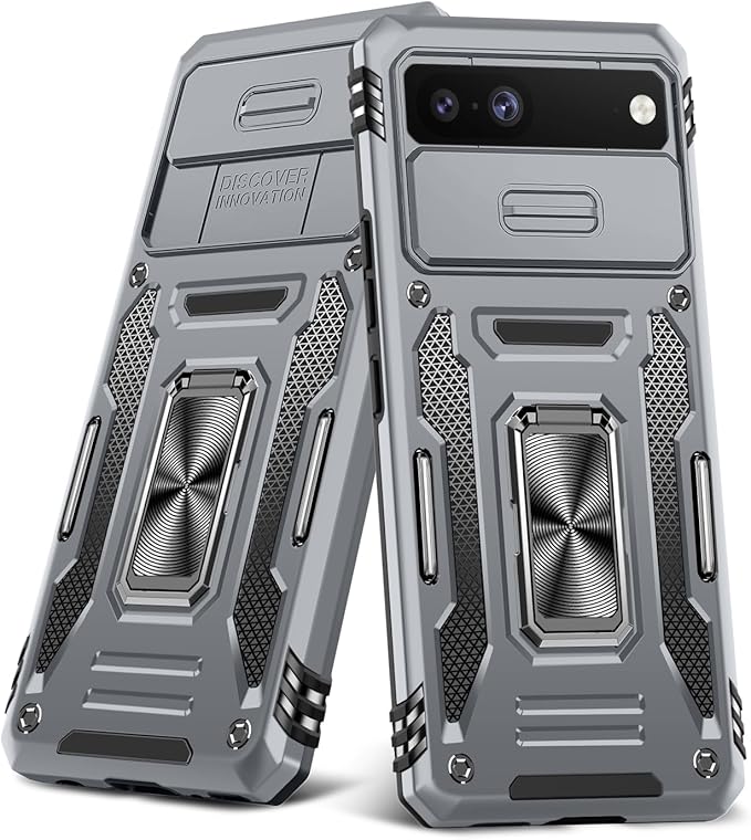 Google pixel7 ケース リング付き スライド式カメラカバー 耐衝撃 スタンド機能 車載ホルダー レンズ保護 グーグル ピクセル7 スマホケース PC TPUバンパー 防塵 人気 落下防止 滑り止め 指紋防止 携帯カバー グレー K26