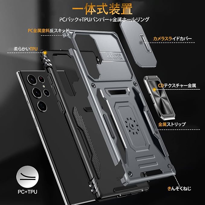 【二重構造】PC(ポリカーボネート)バック+TPU(シリコン)バンパー+金属ホールリング、内側TPU素材とハードPCフレームで制作するため、耐久性に優れた、外 部からの衝撃を内部に吸収されて、側に滑り止めの設計で、落下を防止にできます。全カバー式の音量ボタン&スイッチボタンの設計は、ぴったり合うだけではなく、操作しやすいよう最も適したサイズに作られています。