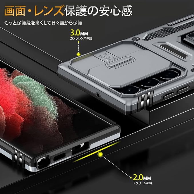 【スライド式カメラカバー】スライドカバーはより滑らかに開閉できるようになりました。カメラレンズもスライド式カバーで砂・埃などの侵入を防ぎます。ケースのエッジは液晶画面より高さの設計で、液晶画面を保護することができます。