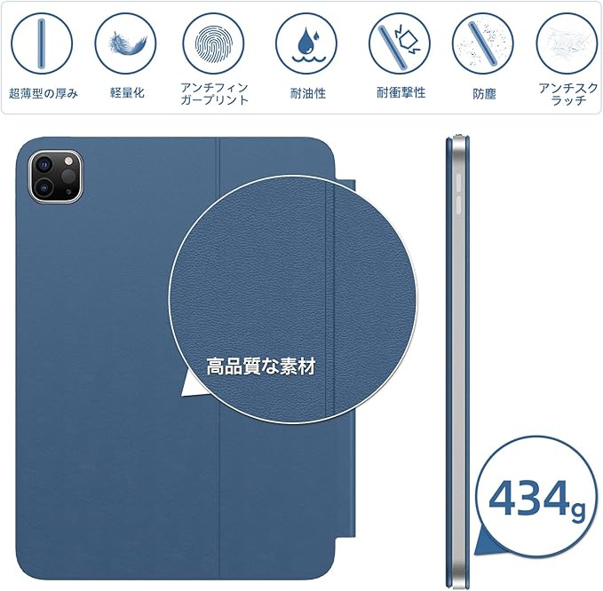 HOU iPad Air 11インチ M2/M3 / iPad Air 10.9インチ (第4世代・第5世代) / iPad Pro 11インチ (第1/2/3/4世代) 対応 キーボード付きケース【日本語配列】磁気吸着 大型キーキャップ設計 キーコンビネーション機能 ダブルアングル調整 耐油・耐傷性 軽量設計 (群青色)