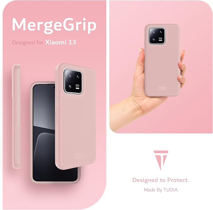 「米軍MIL規格・2層保護」TUDIA Xiaomi 13 5G 用 ケース、「MergeGrip」2層保護 耐衝撃 滑り止め 超薄型TPU Xiaomi13 対応 ケース - ピンク