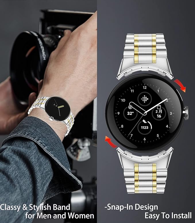 [Caseultra] Stainless Steel Bands Compatible for Google pixel watch バンド 2022,Business Solid Metal Replacement Strap for Men Women1