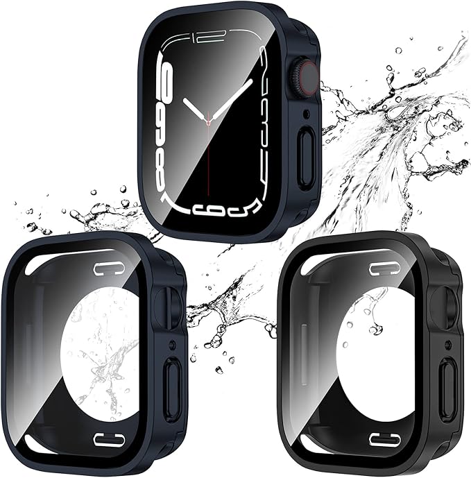 【2枚セット】Apple Watch 用 防水ケース 40mm アップルウォッチ カバー 直角エッジデザイン 2 in 1 全面保護 アップルウォッチ Series SE/6/5/4 カバー ガラスフィルム 一体型 二重構造 PC環保素材 一体型カバー背面カバー 装着簡単 脱落しやすい iwatch (40mm, ブラック と ミッドナイト)