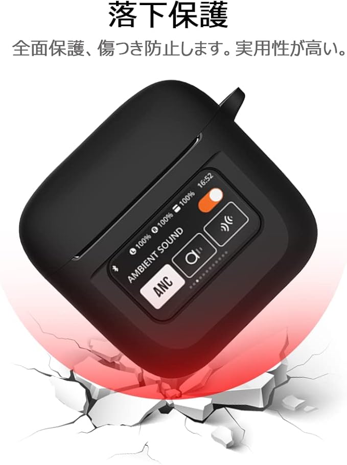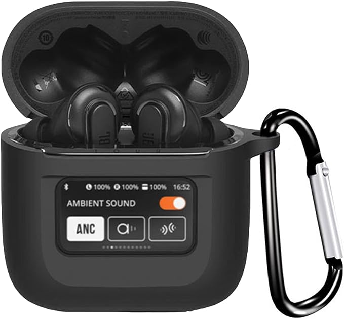 Miimall JBL Tour Pro 2 適用 ケース シリコン Tour Pro 2 カバー 耐衝撃 防傷 軽量 ハードケース 落下防止 カラビナ付き 着装充電可能 JBL Tour Pro 2 保護カバー (ブラック)