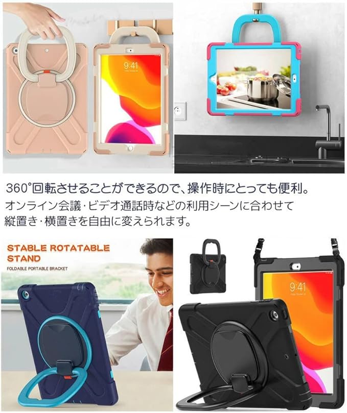 iPad Pro 12.9 第 6 5 4 3 世代 ケース 360°回転持ち手 耐衝撃 ペンシル収納 ワイヤレス充電機能 頑丈 キッズ かわいい 子供 子ども 持ち手付き 肩掛け 斜め掛け アイパッド iPad Pro 12.9 インチ 2022 202