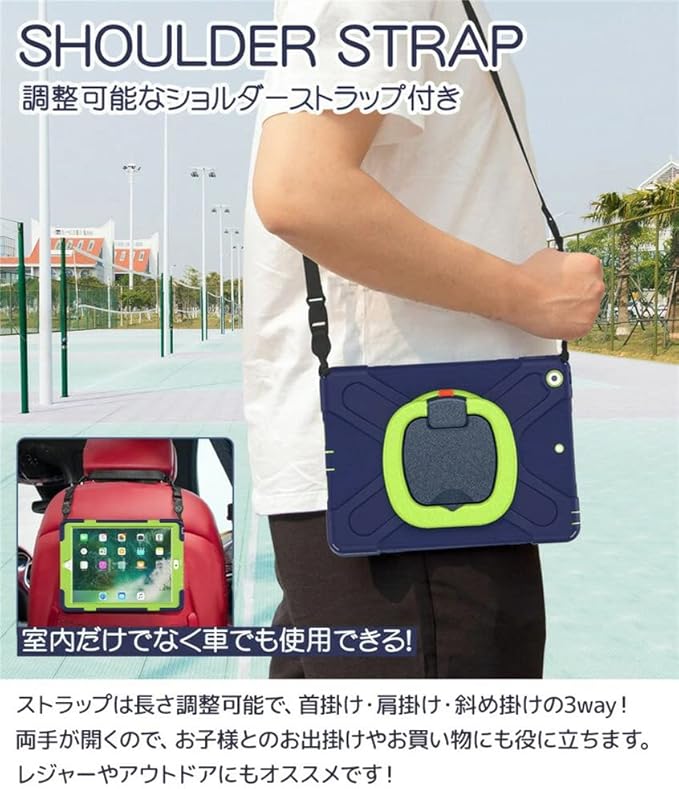 iPad Pro 12.9 第 6 5 4 3 世代 ケース 360°回転持ち手 耐衝撃 ペンシル収納 ワイヤレス充電機能 頑丈 キッズ かわいい 子供 子ども 持ち手付き 肩掛け 斜め掛け アイパッド iPad Pro 12.9 インチ 2022 202