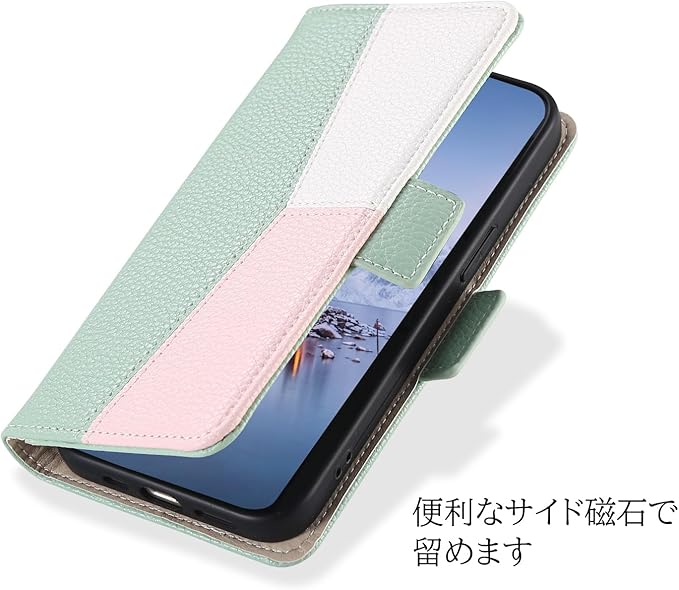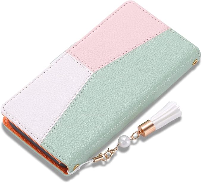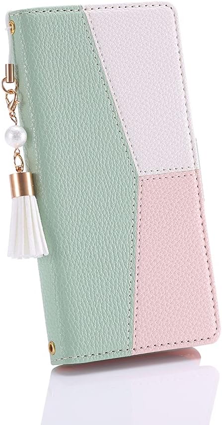 Galaxy S23 SC-51D 手帳型スマホケース おしゃれ 真珠タッセル付き ツートン レザー 三つカラー Galaxy S23 SC-51D/SCG19 対応ケース Galaxy S23 手帳型レザーケース 可愛い レディース エレガント 小銭入れ クーポン収納 Galaxy S23 SCG19 au 手帳型ケース マグネット付き カード収納 キュート グリーンとピンク