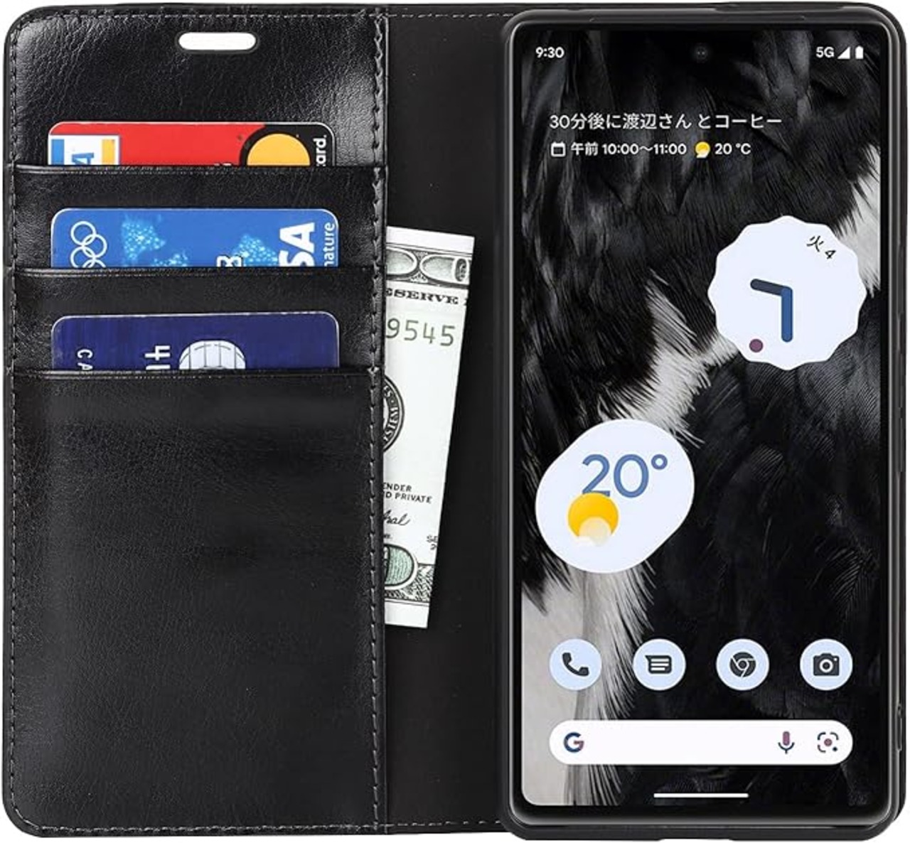 Eastwave Google Pixel 7A ケース Pixel7A 手帳型 ケース カバー pixel 7a google ケース 財布型 カバー 収納ポケット 牛革製品 ポケット収納付き 横置きスタンド機能 落ち着くデザイン オシャレ 4色 ブラック