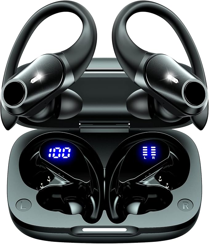 イヤホン bluetooth 耳掛け式イヤホン ワイヤレスイヤホン bluetooth イヤホン 最大40時間再生 ブルートゥースイヤホン Hi-Fi音質 AAC対応 LEDディスプレイ 物理ボタン誤操作なし 落ちないイヤホン 快適装着感 ランニング イヤホン IPX7防水 スポーツ イヤホン 片耳/両耳モード QI/Type-C充電 通勤通学/WEB会議に適用 iOS/Android(黒い) a