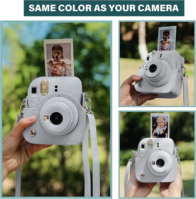 Rieibi instax mini 12ケース、インスタックスミニ 12 ケース Fujifilm チェキ instax mini 12 ケース チェキ12ケース instax mini 12保護カバー instax mini 12収納バッグ PUレザー ショルダーストラップ付 携帯便利 軽量 全面保護 おしゃれ(ホワイト)